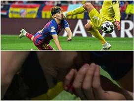 צפו. שחקן ברצלונה חטף פקקים בפרצוף, קיבל טיפול ממושך וחזר עם חבישה
